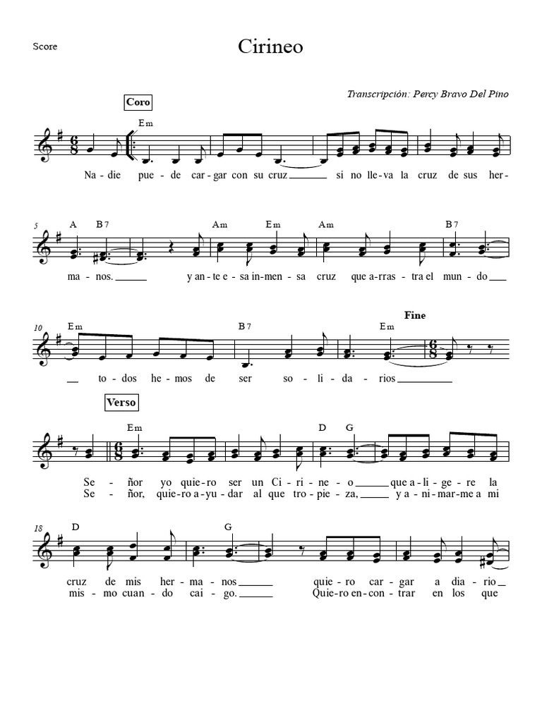 Se - ñor yo quie - ro ser un Ci - ri - ne - o que a - li - ge - re la