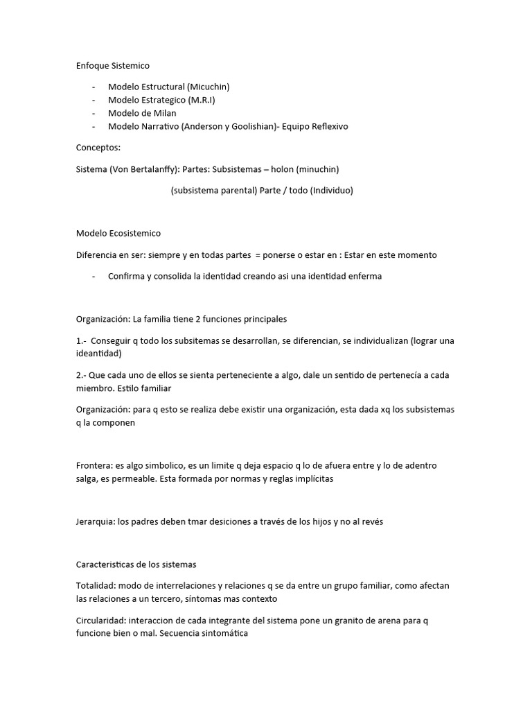 Sistema (Von Bertalanffy): Partes: Subsistemas – holon (minuchin)
