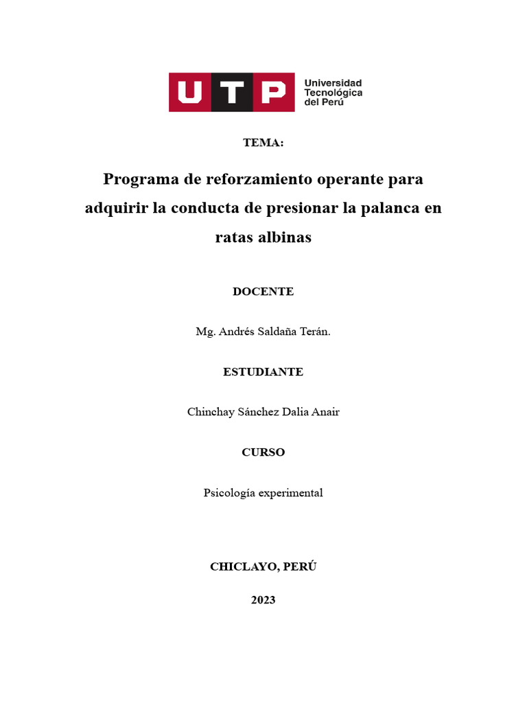 programa de reforzamiento operante en ratas albinas. Esto ayudará a fortalecer y
