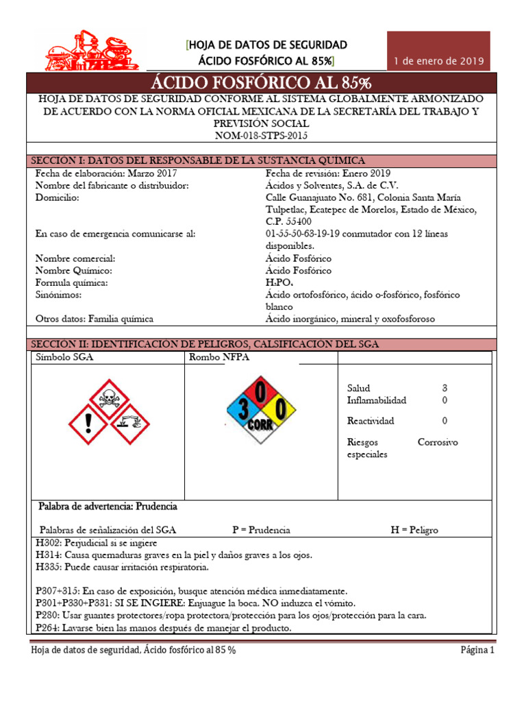 ÁCIDO FOSFÓRICO AL 85%] 1 de enero de 2019