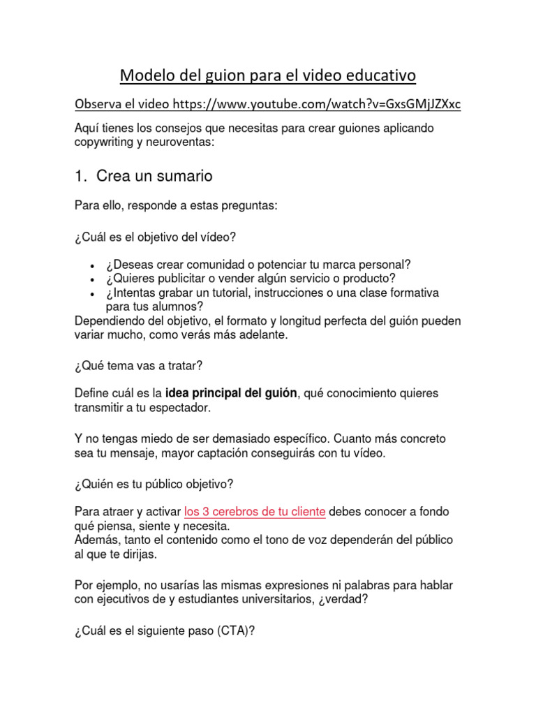 Modelo del guion para el video educativo