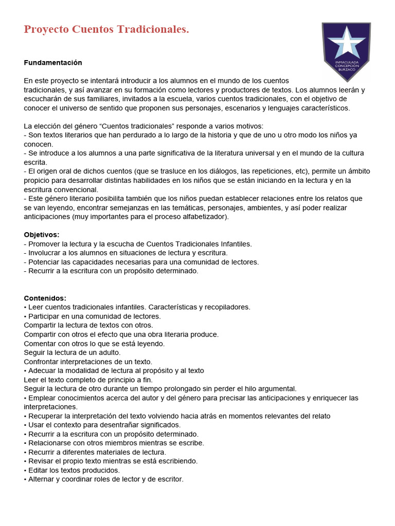 - Promover la lectura y la escucha de Cuentos Tradicionales Infantiles.