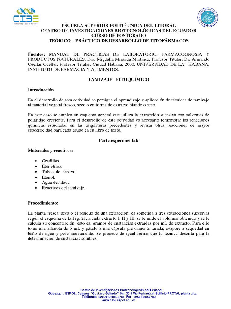 TEÓRICO – PRÁCTICO DE DESARROLLO DE FITOFÁRMACOS
