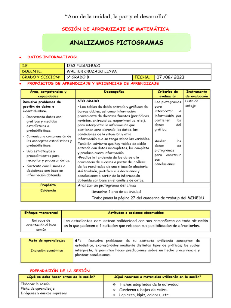Resuelve problemas de 6TO GRADO Lee pictogramas Lista de