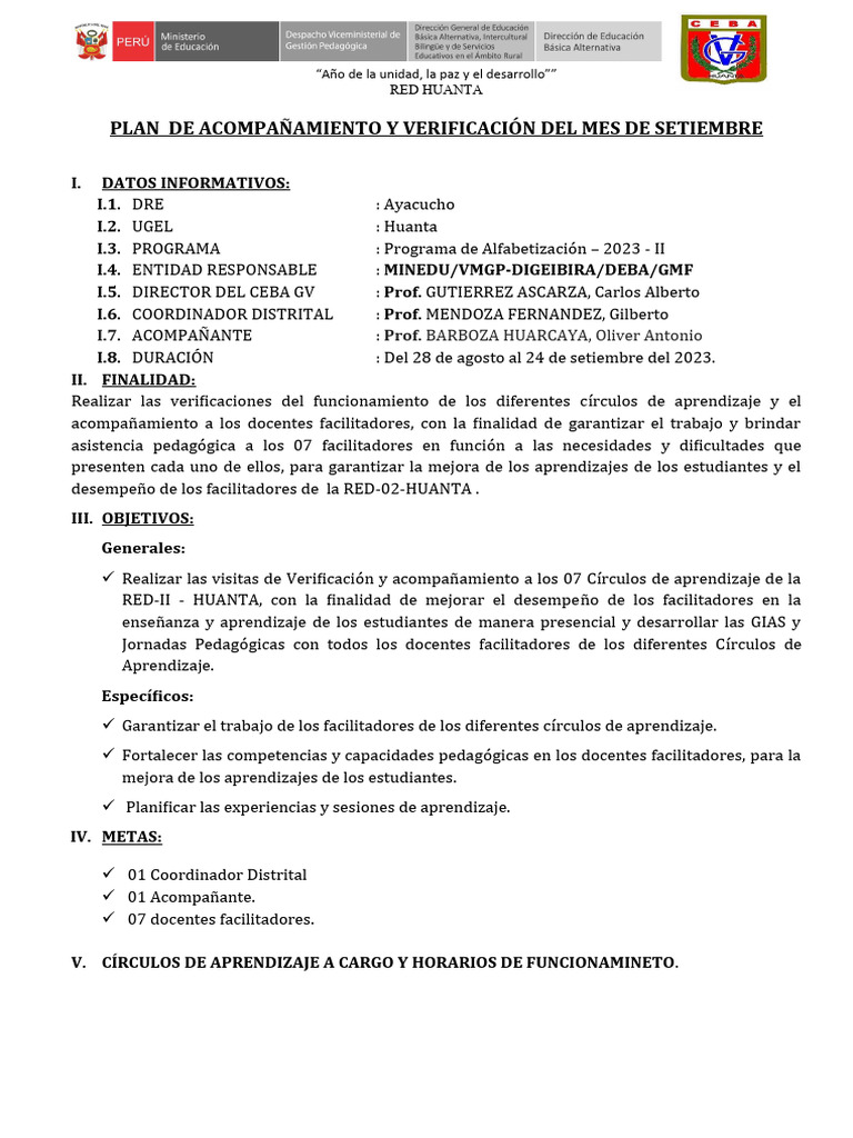 PLAN DE ACOMPAÑAMIENTO Y VERIFICACIÓN DEL MES DE SETIEMBRE