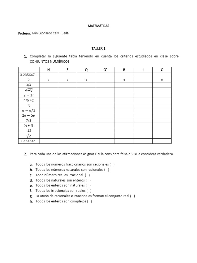 g. La unión de racionales e irracionales forman el conjunto real ( )