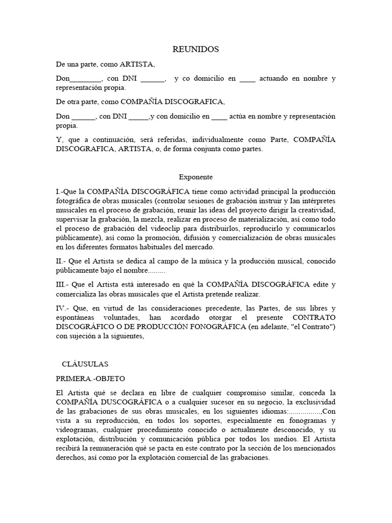DISCOGRÁFICO O DE PRODUCCIÓN FONOGRÁFICA (en adelante, "el Contrato")