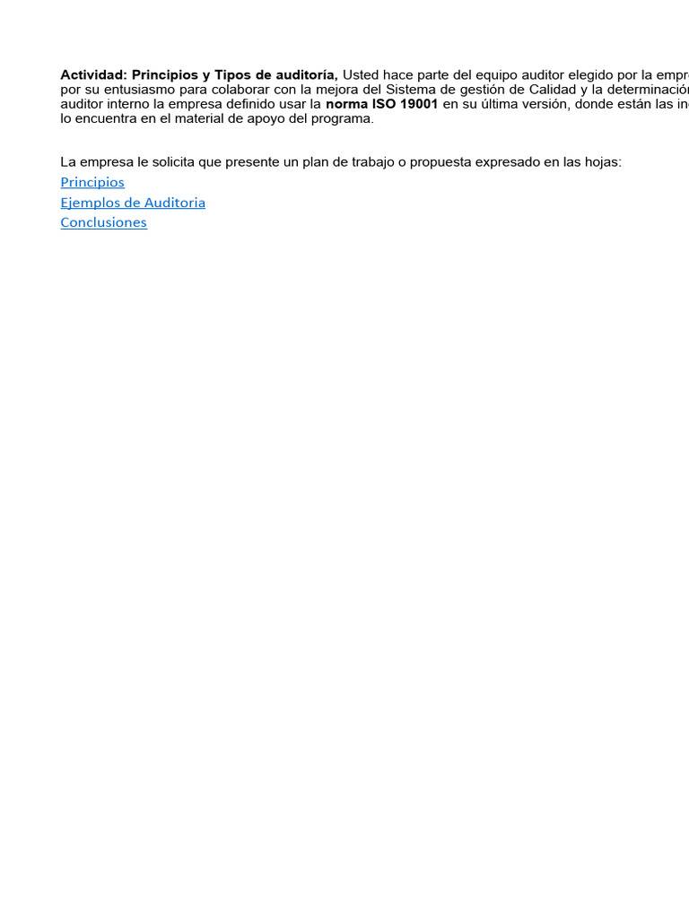 Actividad: Principios y Tipos de auditoría, Usted hace parte del equipo auditor elegido por la empre