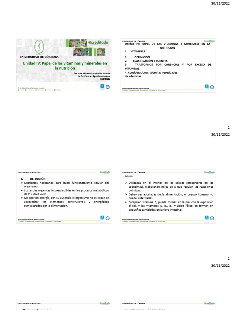 Unidad IV: PAPEL DE LAS VITAMINAS Y MINERALES EN LA