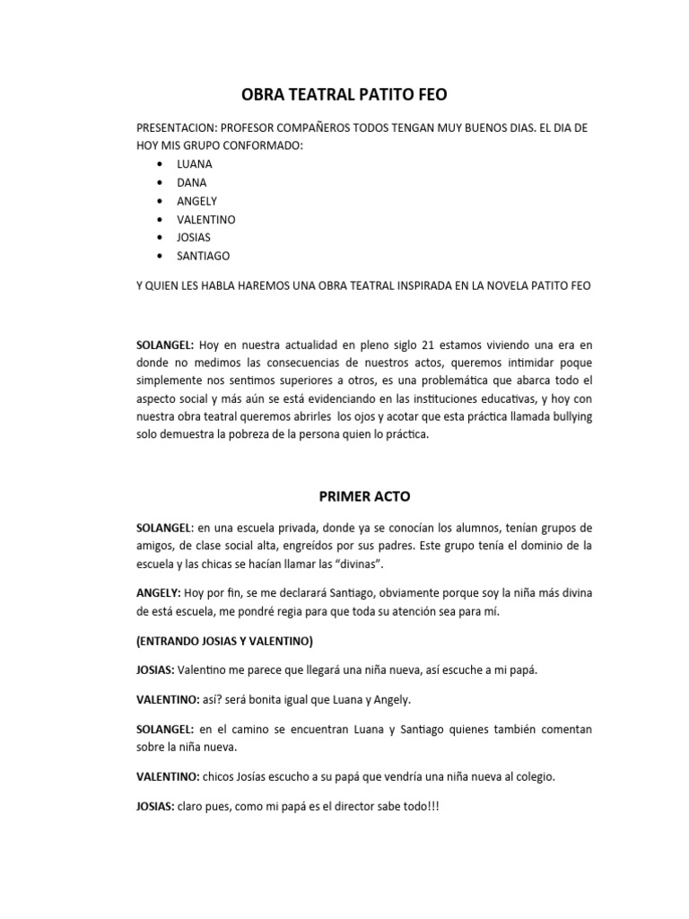 Y QUIEN LES HABLA HAREMOS UNA OBRA TEATRAL INSPIRADA EN LA NOVELA PATITO FEO