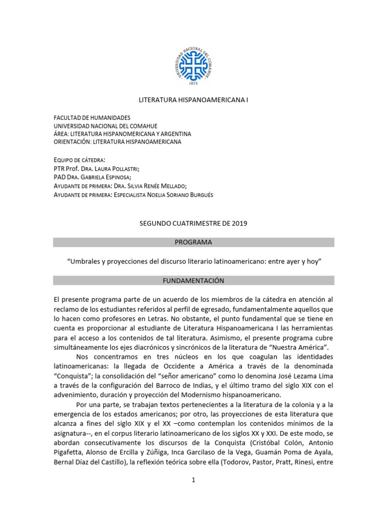 LITERATURA HISPANOAMERICANA I