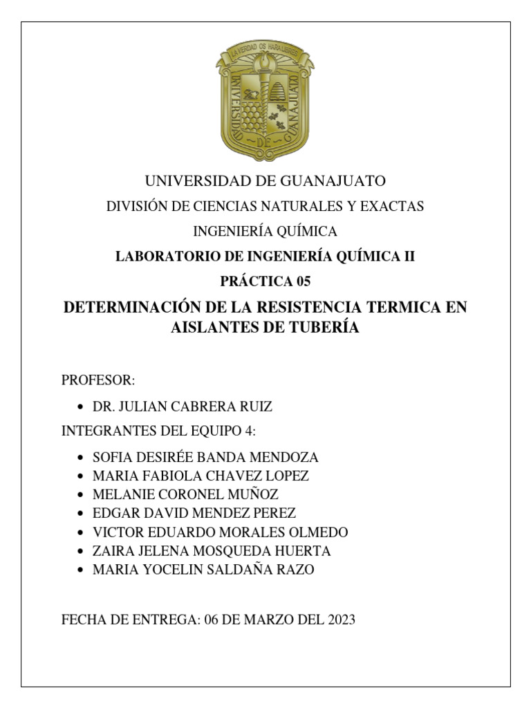 Para la resistencia térmica se utiliza la ecuación especificada en el manual de la práctica.