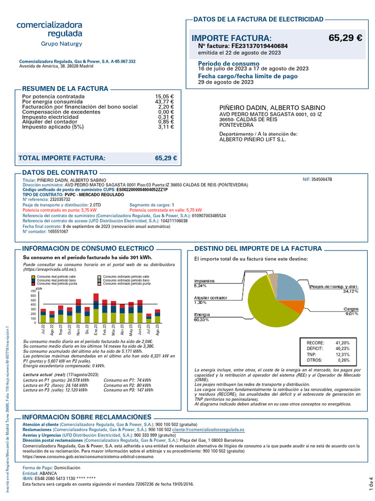 https://comparador.cnmc.gob.es/comparador/QRE?cp=36650&pP1=5.75&pP2=5.75&caP1=1291&caP2=1515&caP3=2365&iniA=2022-08-17&tc=A0&finContrato=2023-09-08&tf=N&imp=65.29&cfP1=74&cfP2=80&cfP3=147&iniF=2023-07-16&finF=2023-08-17&impSA=0.00&impOtrosConIE=0.00&impOtrosSinIE=0.85&com=R2-356&cups=ES0022000004604052ZZ1P&pmaxP1=6.331&pmaxP2=5.607&fFact=2023-08-22&finBS=2.20&ajuste=-1&impPot=15.05&impEner=43.77&prP1=28.496055&prP2=1.342713&prE1=0.191154&prE2=0.149244&prE3=0.120334&rev=3
