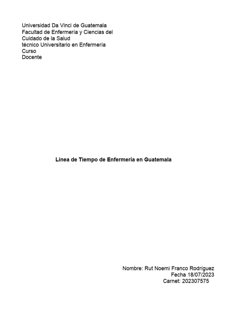 LINEA DE TIEMPO DE ENFERMERIA EN GUATEMALA