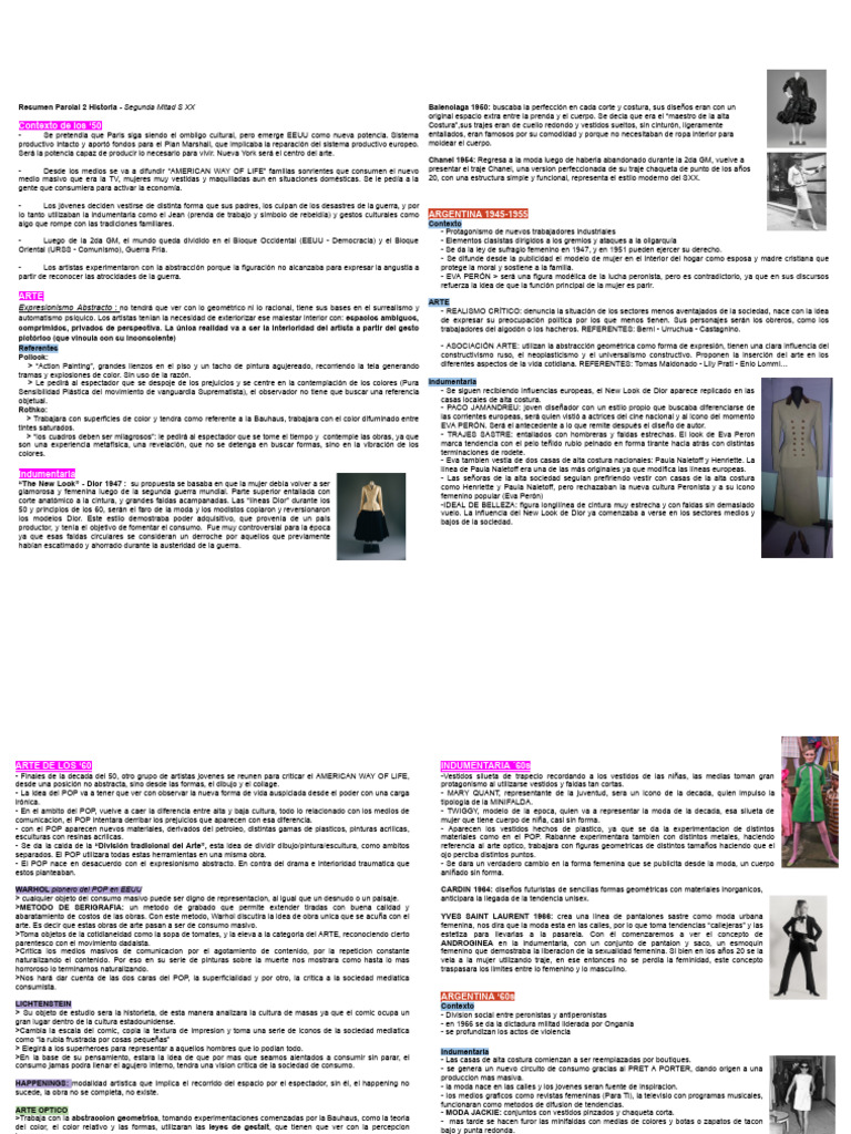 Resumen Parcial 2 Historia - Segunda Mitad S XX Balenciaga 1950: buscaba la perfección en cada corte y costura, sus diseños eran