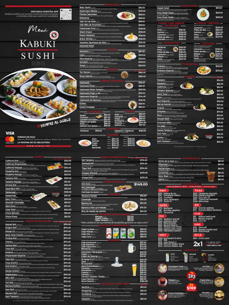 Tampico Kani (10 Pieces) (Kanikama 34 gr, tampico 50 gr) $174.00 Cocktails (350 ml) $93.00 Frutos Prohibidos (45 ml)