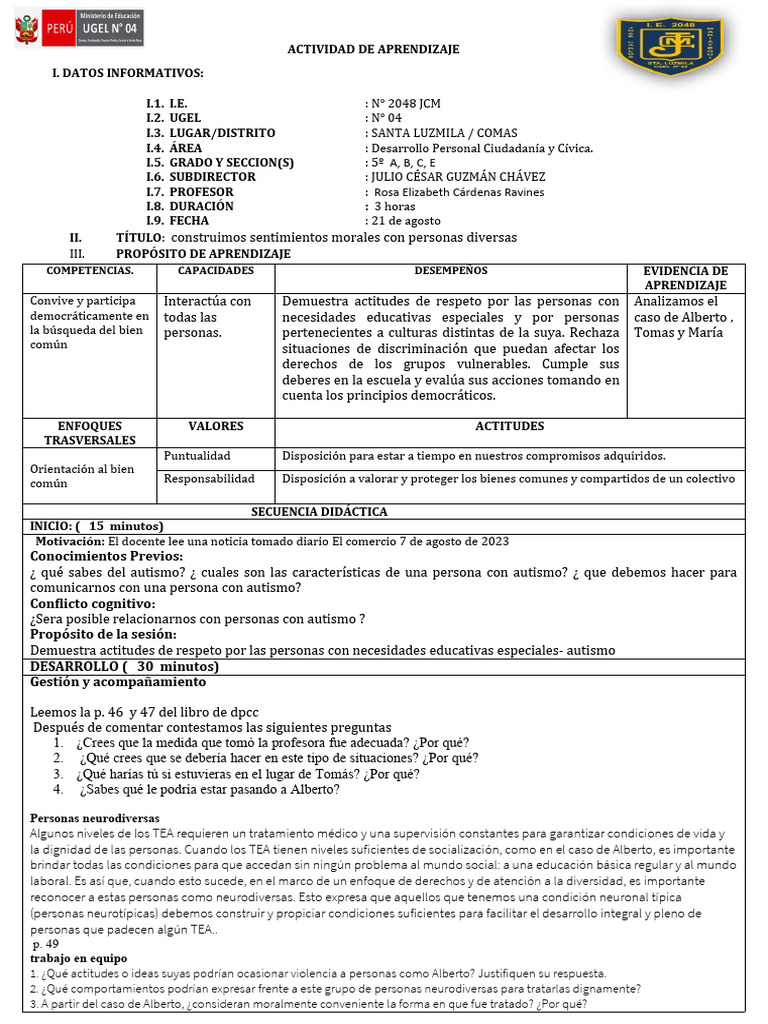 II. TÍTULO: construimos sentimientos morales con personas diversas