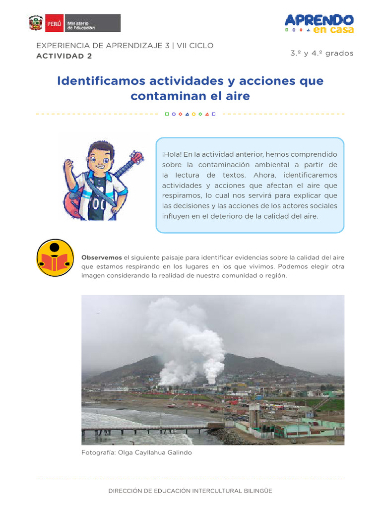 • Reconocemos las actividades en nuestra localidad y región que contaminan el