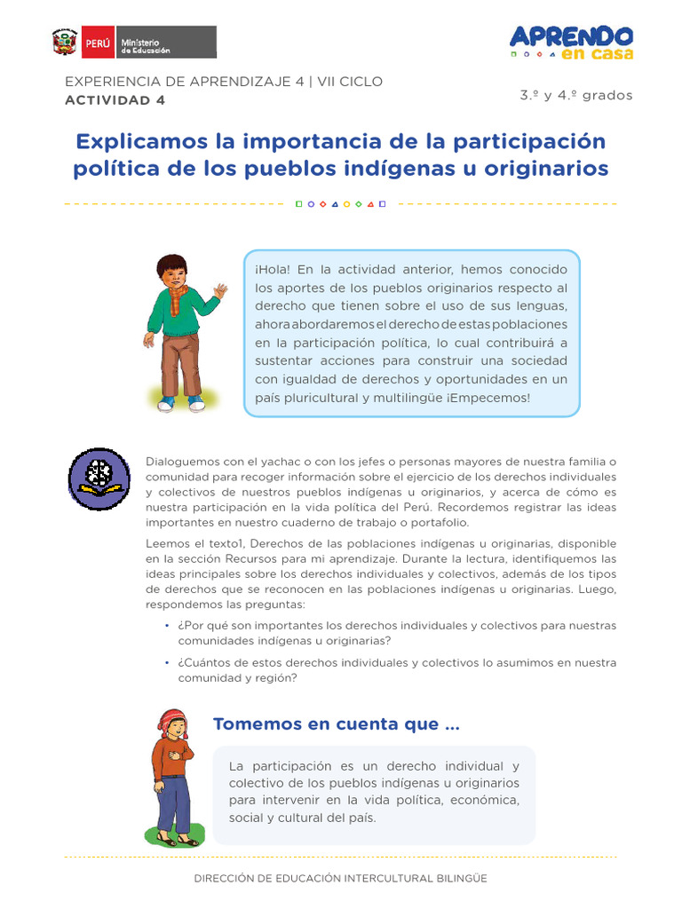 u originarios, leemos el texto 2, La participación política de los pueblos indígenas