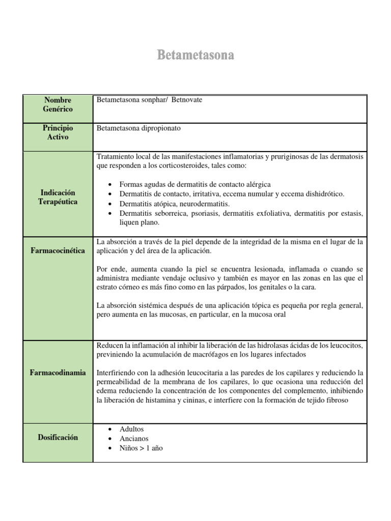 Indicación Dermatitis de contacto, irritativa, eccema numular y eccema dishidrótico.