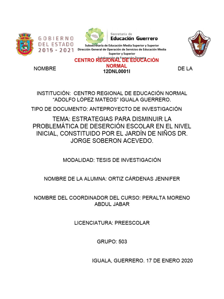 deserción escolar en los alumnos del grupo 1º “B” del jardín de niños Dr. Jorge