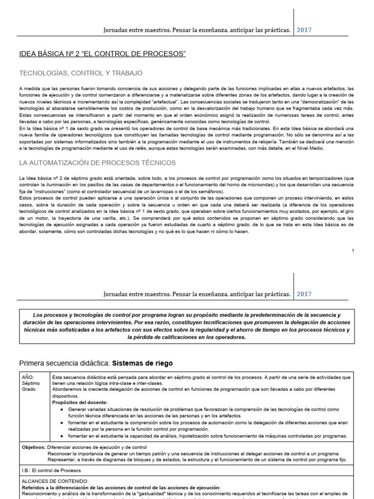 tecnológicos de control analizados en la Idea básica nº 1 de sexto grado, que operaban sobre ciertos funcionamientos muy acotados, por ejemplo, el giro