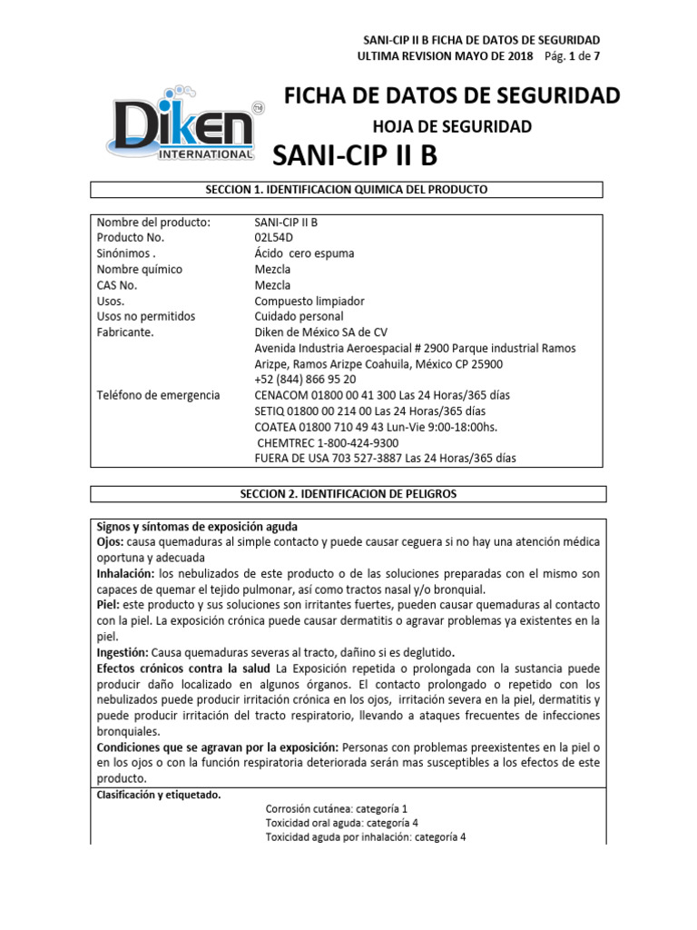 SANI-CIP II B FICHA DE DATOS DE SEGURIDAD