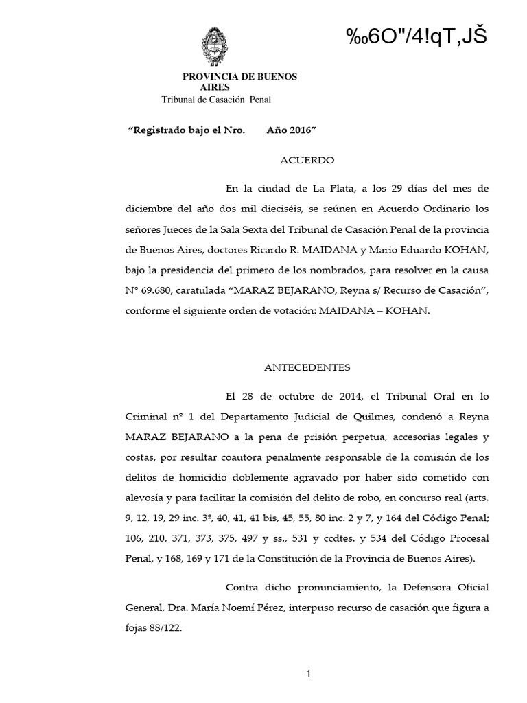N° 69.680, caratulada “MARAZ BEJARANO, Reyna s/ Recurso de Casación”,