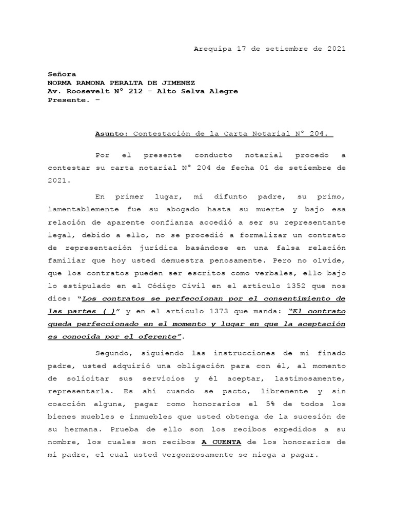 contestar su carta notarial Nº 204 de fecha 01 de setiembre de
