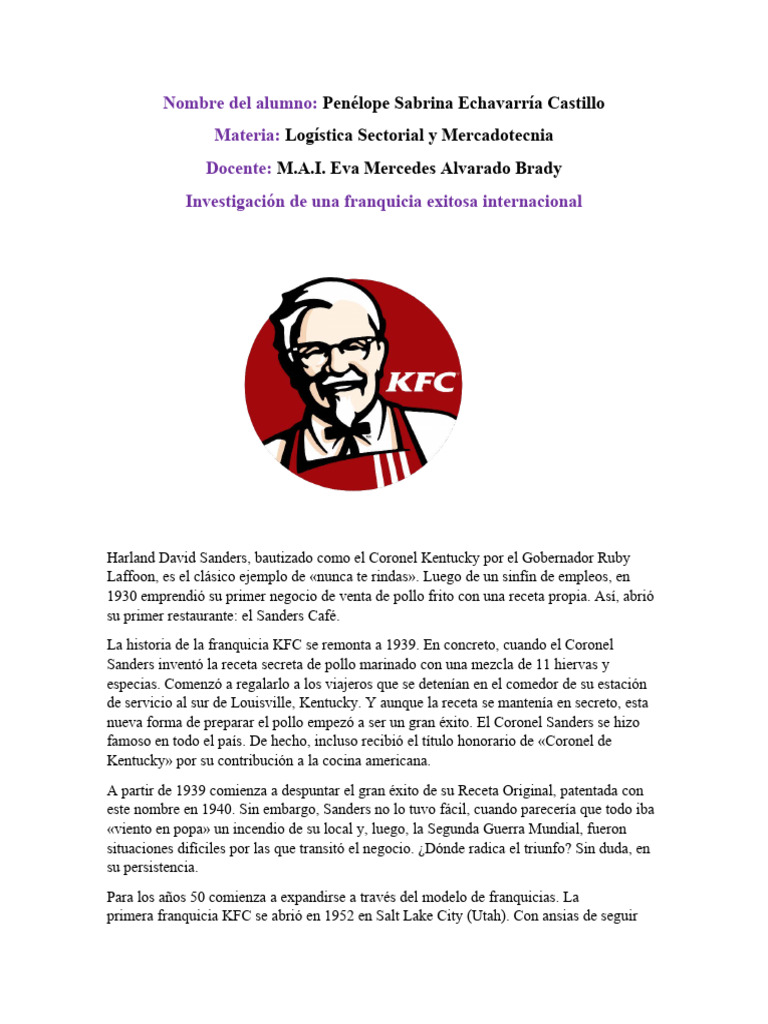 La franquicia KFC es la cadena más grande de restaurantes especializados en recetas de