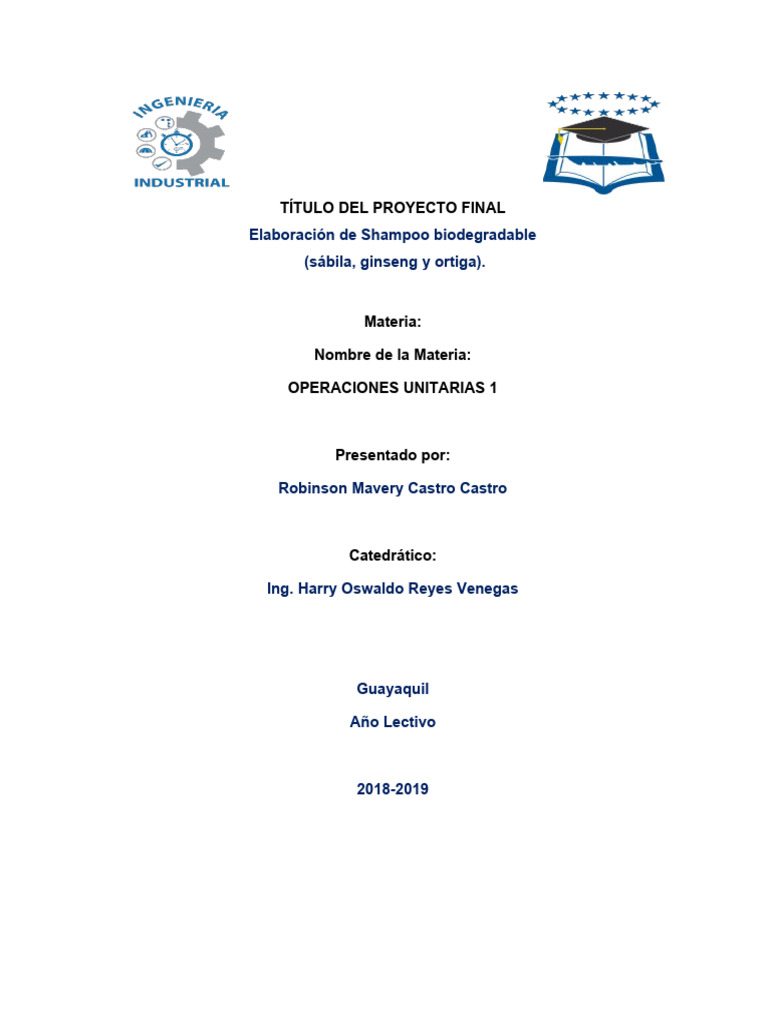 3.1 PROCESO PARA LA ELABORACION DEL SHAMPOO BIODEGRADABLE........10