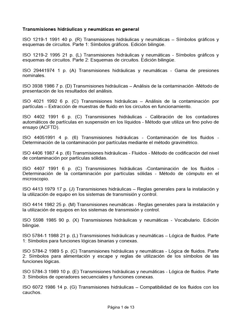 ISO 1219-1 1991 40 p. (R) Transmisiones hidráulicas y neumáticas – Símbolos gráficos y