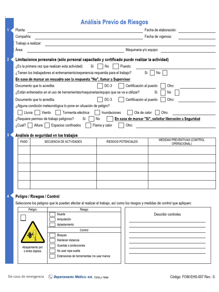 Seleccione los peligros que le pueden afectar al realizar el trabajo, así como los riesgos y medidas de control que apliquen: