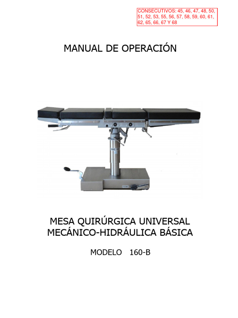 modelo, fecha de fabricación y número de serie de la mesa de operaciones que aparece en la placa de