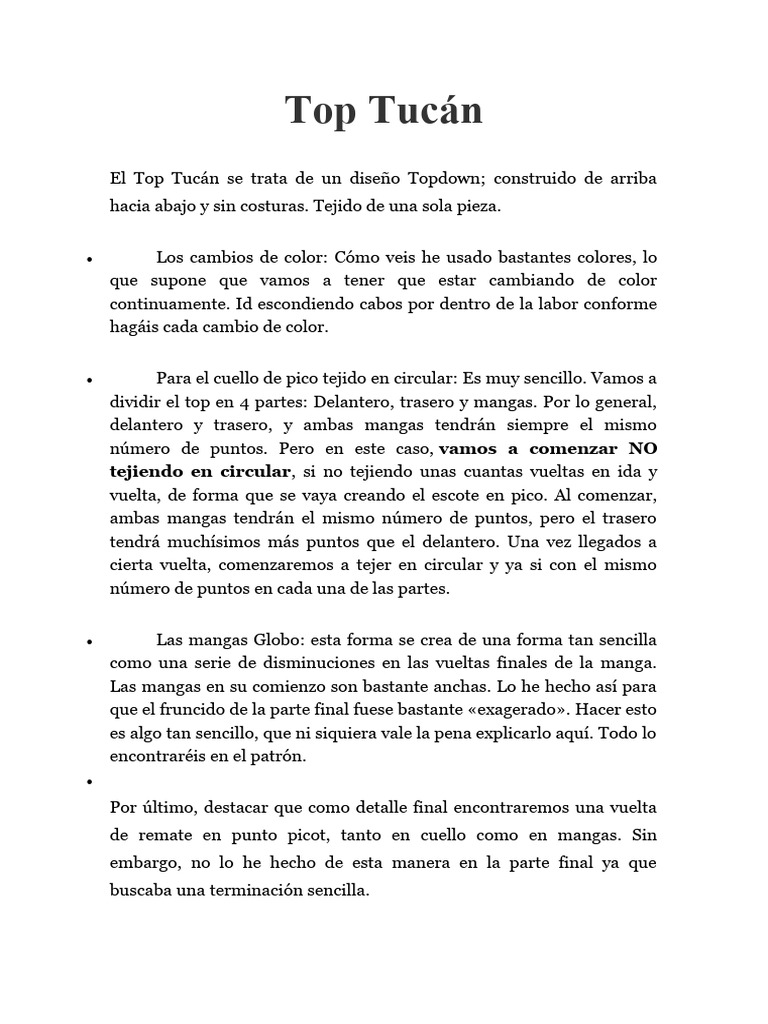 incluye el Patrón del Top Tucán en formato PDF ( de forma