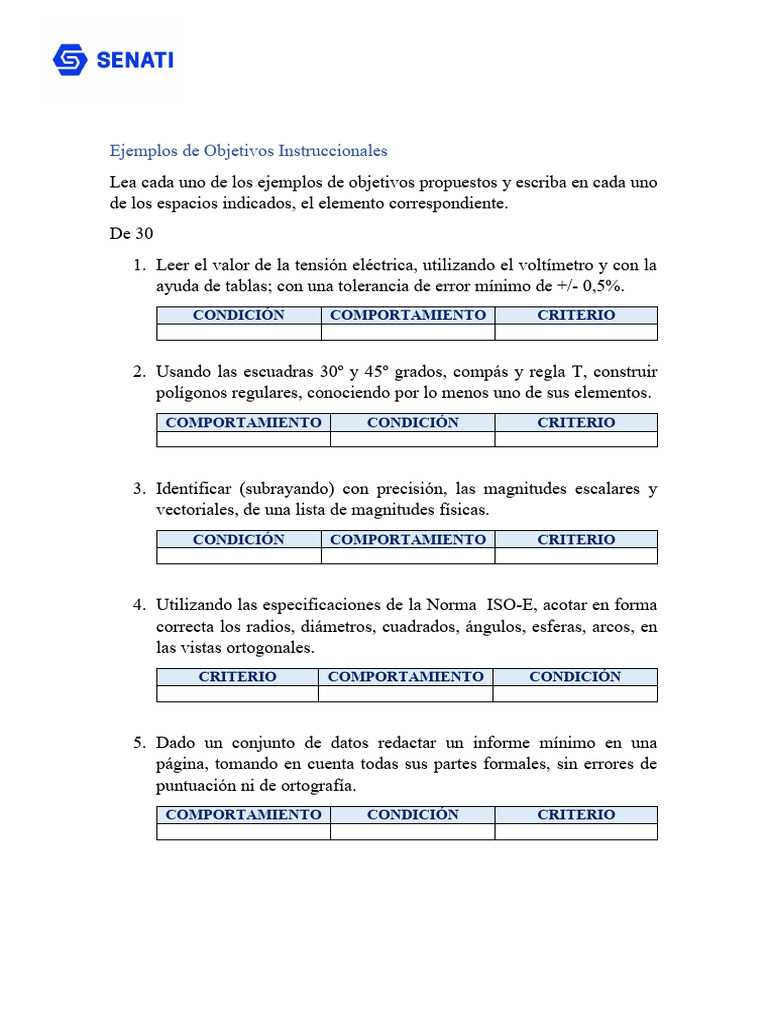 Lea cada uno de los ejemplos de objetivos propuestos y escriba en cada uno