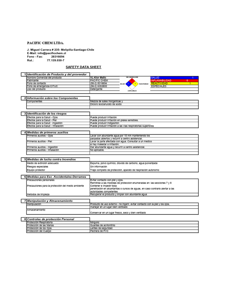 Fabricante PACIFIC CHEM INFLAMABILIDAD 0