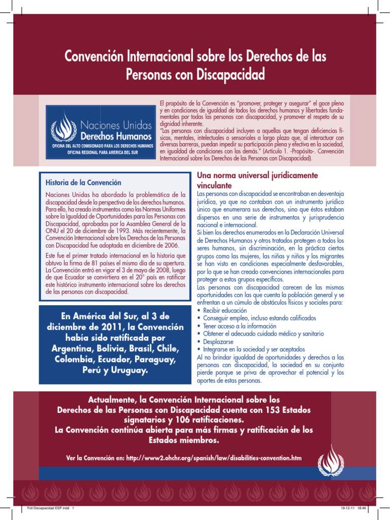 este histórico instrumento internacional sobre los derechos Las personas con discapacidad carecen de las mismas