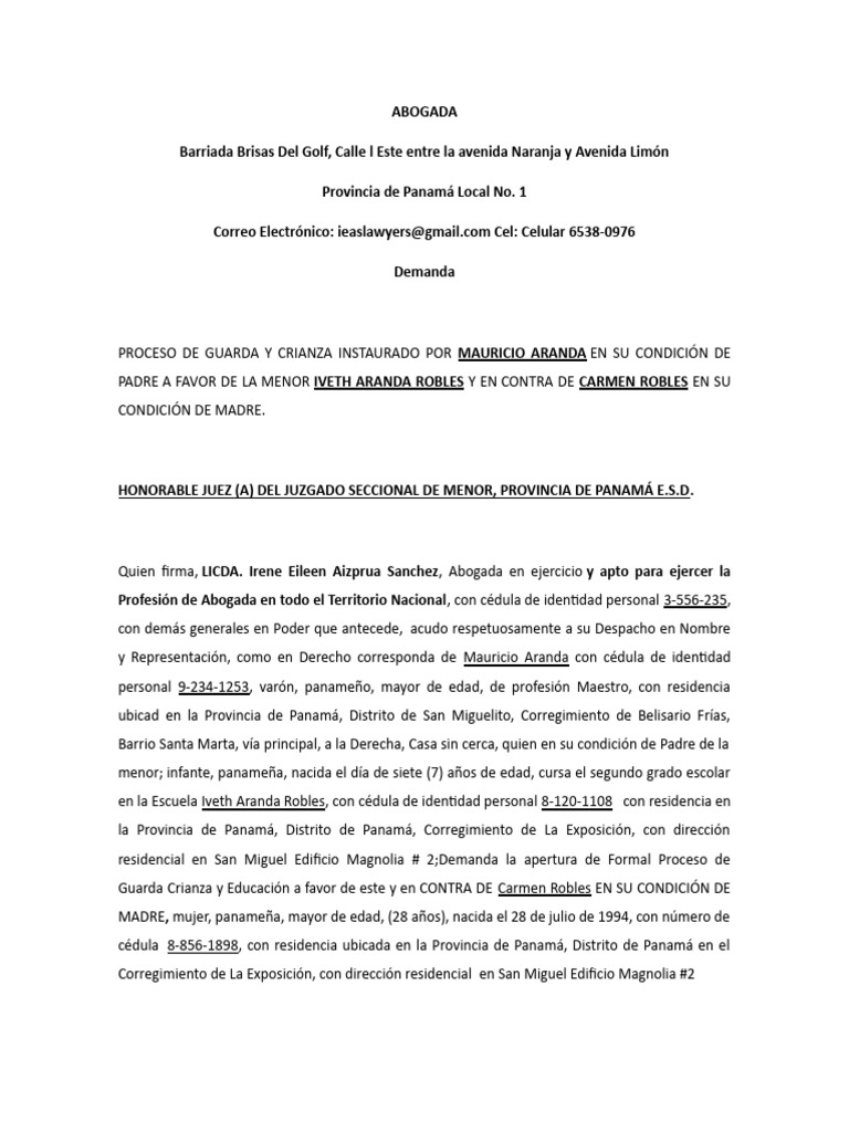 Correo Electrónico: ieaslawyers@[Link] Cel: Celular 6538-0976