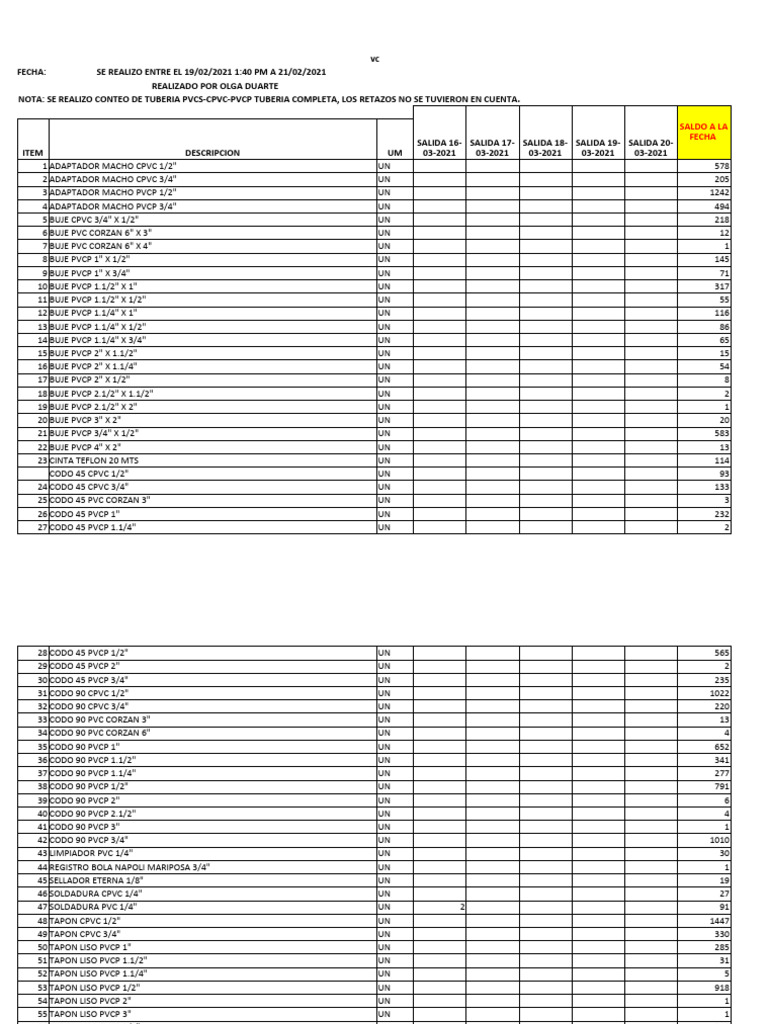 NOTA: SE REALIZO CONTEO DE TUBERIA PVCS-CPVC-PVCP TUBERIA COMPLETA, LOS RETAZOS NO SE TUVIERON EN CUENTA.
