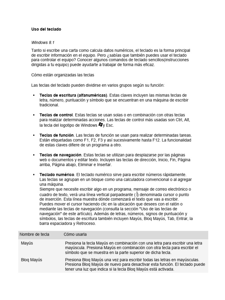 Las teclas del teclado pueden dividirse en varios grupos según su función: