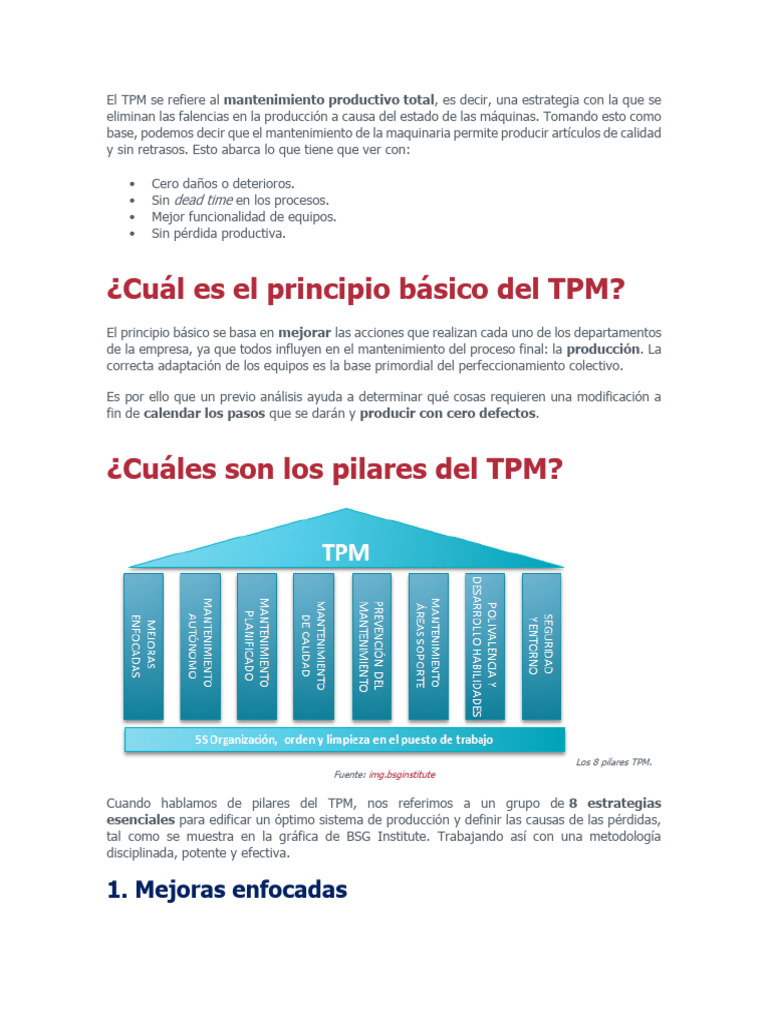 El TPM se refiere al mantenimiento productivo total, es decir, una estrategia con la que se