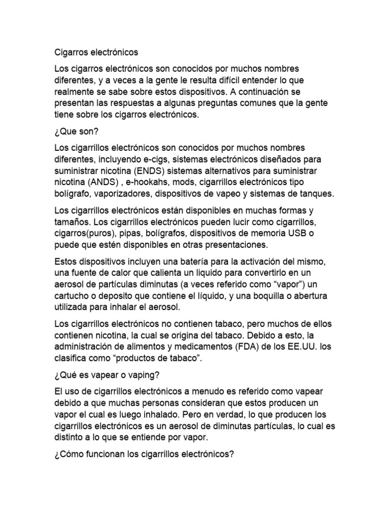 tiene sobre los cigarros electrónicos.