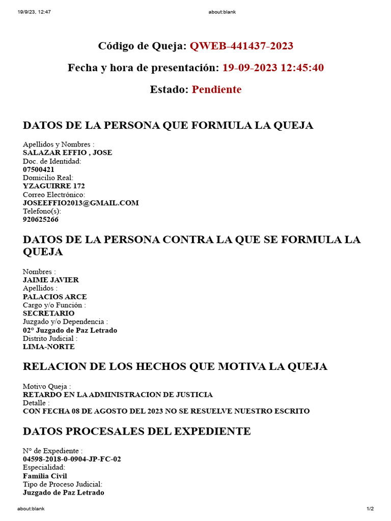 RELACION DE LOS HECHOS QUE MOTIVA LA QUEJA
