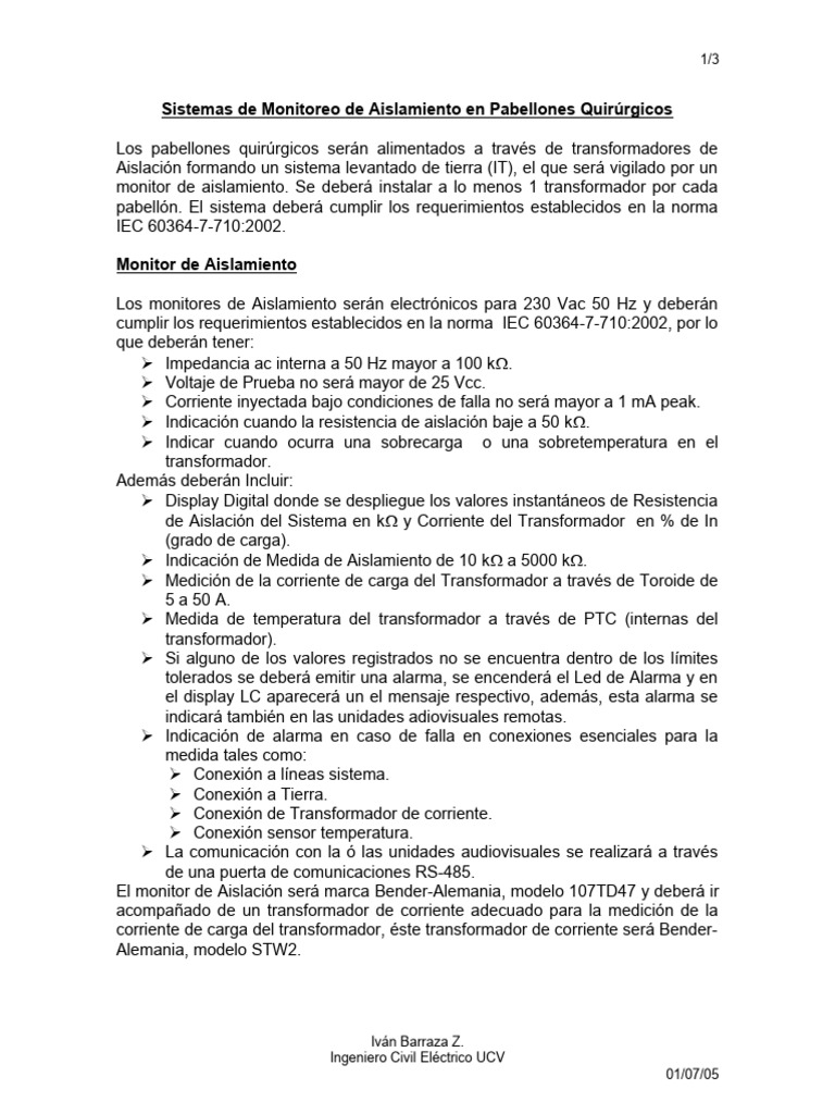 monitor de aislamiento. Se deberá instalar a lo menos 1 transformador por cada
