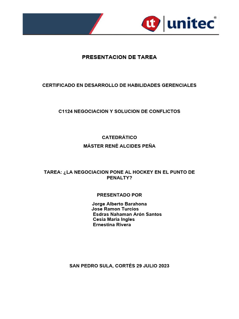 Caso grupal no.3: ¿LA NEGOCIACION PONE AL HOCKEY EN EL PUNTO