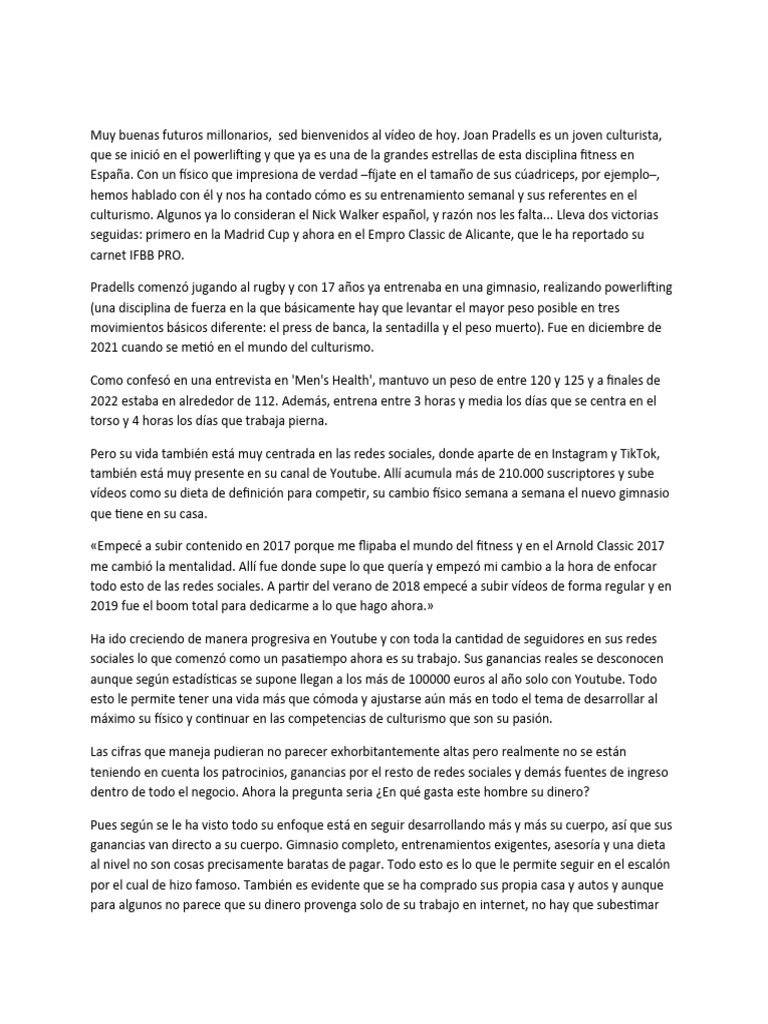 todo el dinero que se mueve en redes sociales. Además, como cualquier otro deporte, el culturismo trae