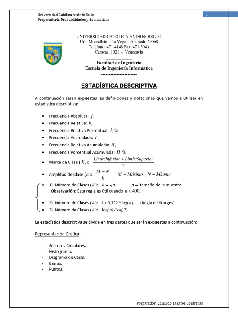 La estadística descriptiva se divide en tres partes que serán expuestas a continuación: