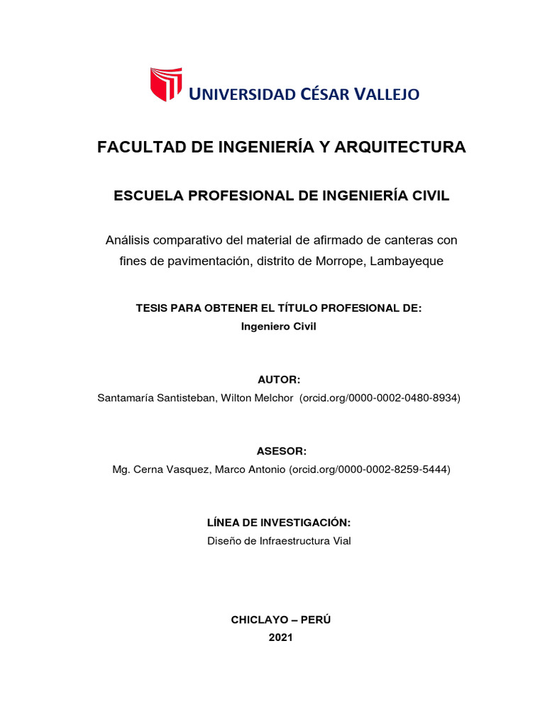 Tesis: Análisis Comparativo del Material de Afirmado de Canteras con fines de Pavimentación, en el distrito de Morrope, Lambayeque.