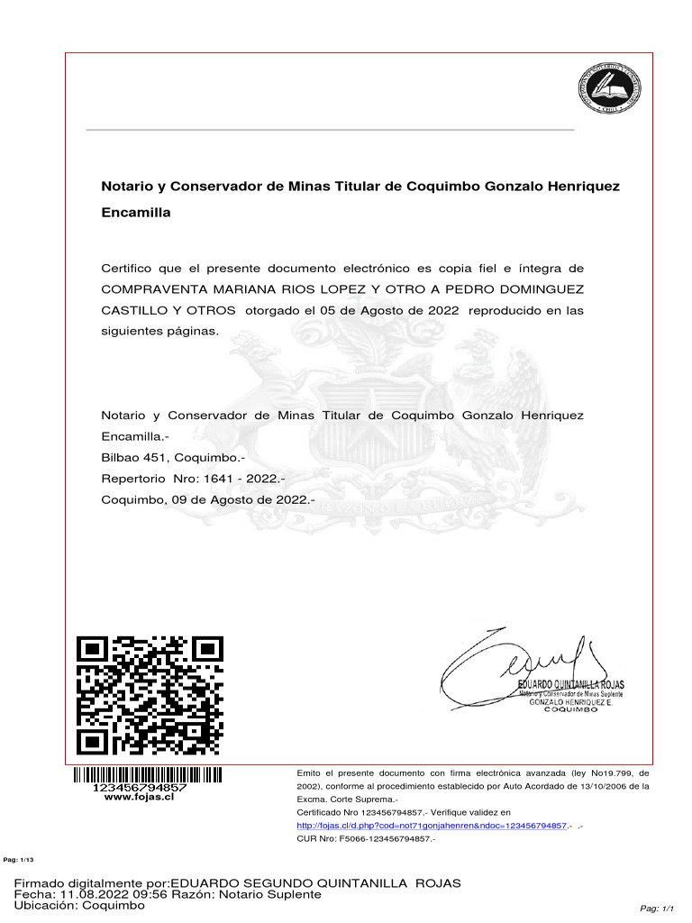 Fecha: 11.08.2022 09:56 Razón: Notario Suplente